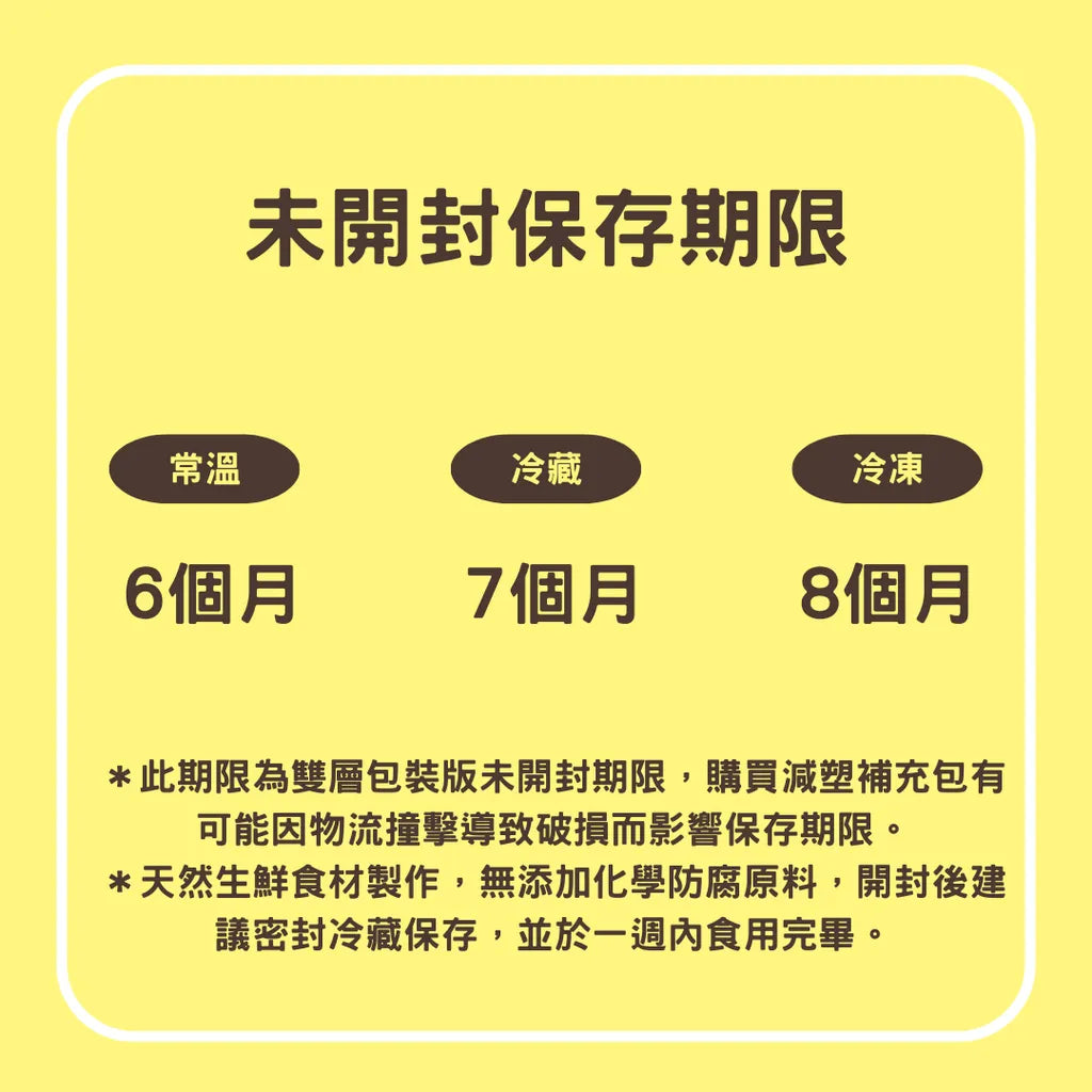 正常版未開封保存期限 |常溫6個月 / 冷藏7個月 / 冷凍8個月